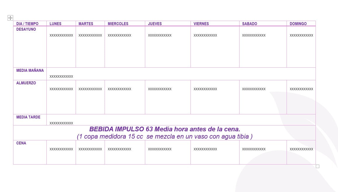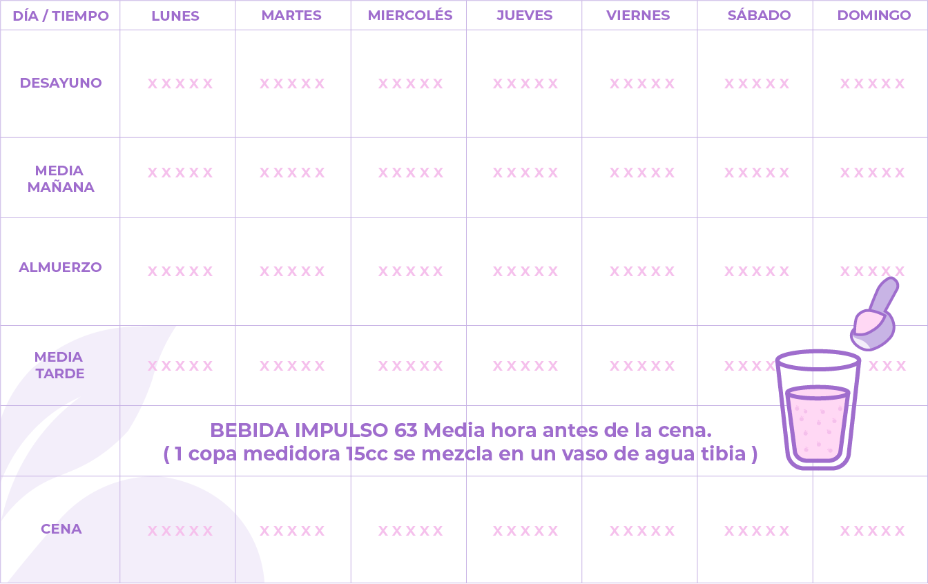 Impulso 63 no es solo una bebida, es un acompañamiento completo. Gracias a su plan de alimentación personalizado, aprendí a nutrirme de forma consciente, equilibrada y sin restricciones innecesarias.